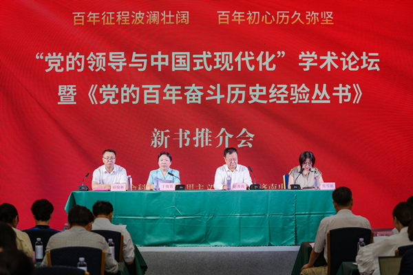 2023年7月29日,“党的领导与中国式现代化”学术论坛暨《党的百年奋斗历史经验丛书》新书推介会在济南举行。本次会议由中国社会科学院马克思主义研究院、济南出版社主办,中国社会科学院马克思主义研究院马克思主义中国化研究部、中国社会科学院大学马克思主义学院、济南出版社承办。中国社会科学院机关党委副书记、马克思主义研究院纪委书记、副院长于俊霄,中共济南市委宣传部二级巡视员赵善海,济南出版社党委书记、董事长田俊林出席开幕式并致辞。开幕式由济南社副总编辑张雪丽主持。
