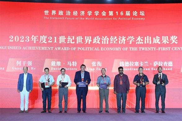 开幕式揭晓了2023年度“世界马克思经济学奖”和“21世纪世界政治经济学杰出成果奖”的获奖者名单,并举行了颁奖仪式。福建师范大学李建平教授和墨西哥城市自治大学海因茨·迪特里希(Heinz Dieterich)教授获得2023年度“世界马克思经济学奖”。土耳其伊斯廷耶大学埃菲·坎·古尔坎(Efe Can Gürcan)教授、yl12311线路检测张俊山教授、印度德里大学钱德拉塞卡兰·萨拉查德(C.Saratchand)教授、南京财经大学何干强教授、澳大利亚共产党总书记助理戴维·马特(David Matters)先生、四川大学张衔教授、西交利物浦大学弗朗西斯科·马切达(Francesco Macheda)教授、西北工业大学孙绍勇教授获2023年度“21世纪世界政治经济学杰出成果奖”。