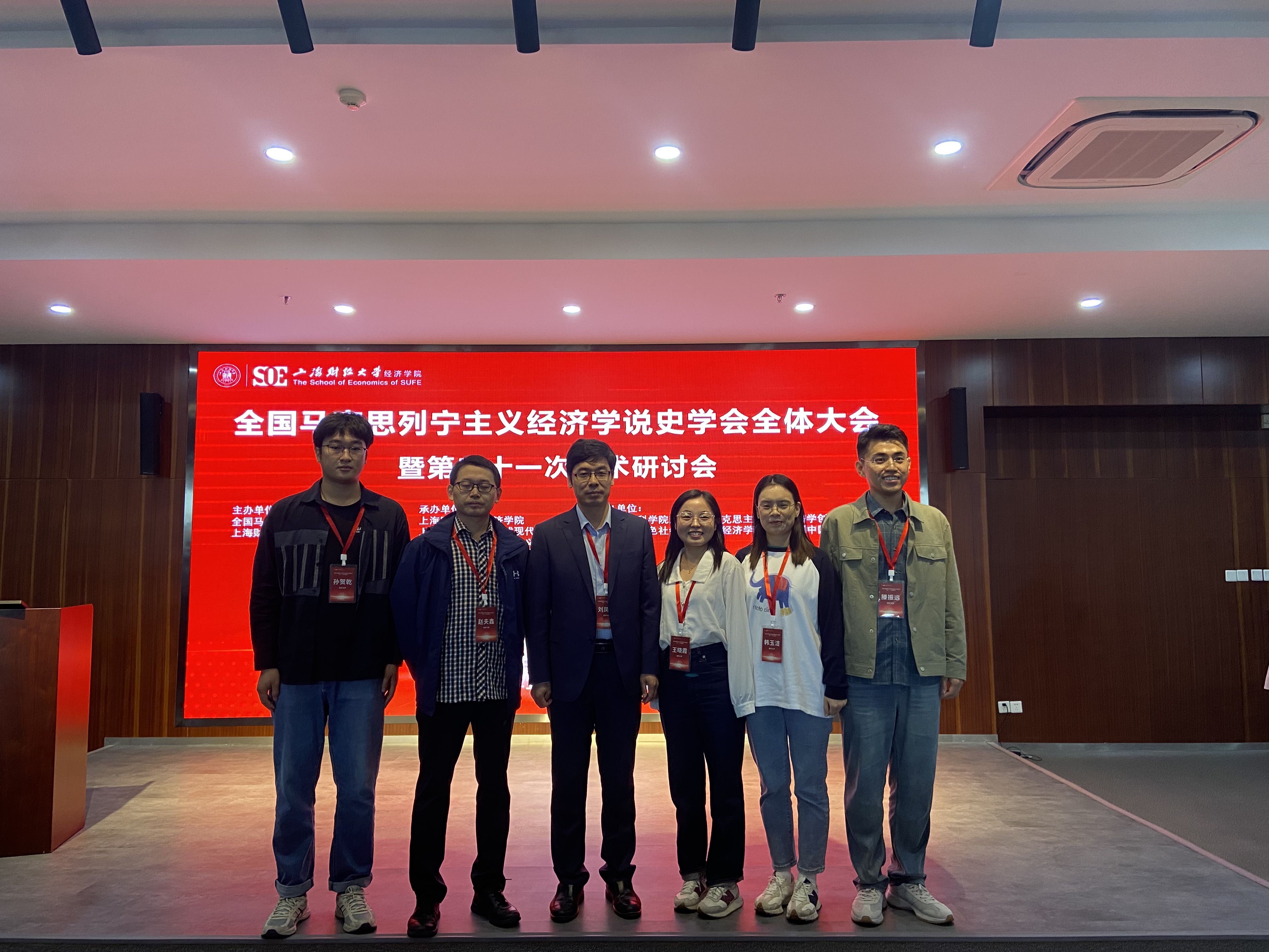 2023年10月28日至29日,“全国马克思列宁主义经济学说史学会全体大会暨第二十一次学术研讨会”在上海财经大学成功举办。本次会议由全国马克思列宁主义经济学说史学会、上海财经大学主办,上海财经大学经济学院、上海财经大学中国式现代化研究院、上海财经大学滴水湖智库、上海财经大学马克思主义学院承办,中国社会科学院当代中国马克思主义政治经济学创新智库、全国中国特色社会主义政治经济学研究中心(中国社会科学院)协办。本次会议的主题是“不断推进马克思主义经济学说的中国化时代化”。我院刘凤义教授、博士生赵夫鑫、王晓霞、韩玉洁、滕振远和孙贺乾受邀参加。