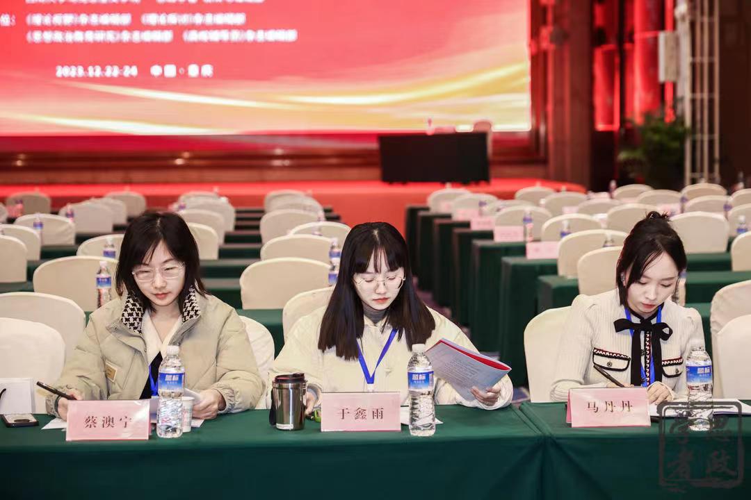 2023年12月23日,由重庆市高校师生思想政治工作研究咨政中心(以下简称“中心”)、西南大学马克思主义学院、“思政学者”公众号编辑部共同主办,《理论视野》《理论探讨》《思想政治教育研究》《高校辅导员》等杂志协办的“‘思政学者’2023重庆论坛暨学习贯彻习近平文化思想学术研讨会隆重召开。本次论坛以“深入学习贯彻习近平文化思想,继续推动文化繁荣,建设文化强国,建设中华民族现代文明”为主题,收到来自全国300多所高校的700篇论文,140多位专家学者、老师和同学与会。我院博士研究生马丹丹、于鑫雨、梁倩,硕士研究生蔡澳宁受邀参加会议。