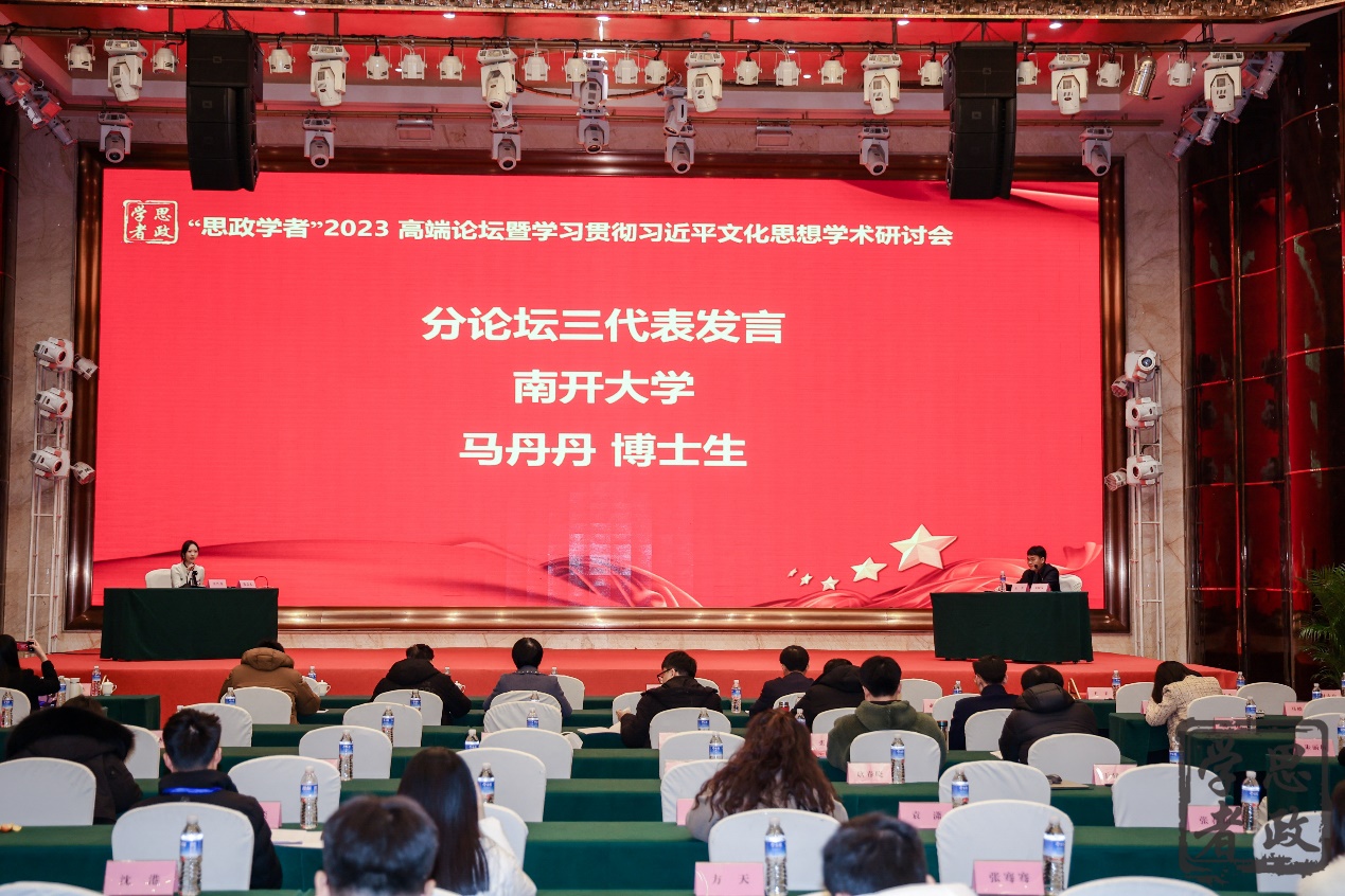 论坛设置了三个分论坛,与会代表围绕习近平文化思想“七个着力”重大要求、习近平文化思想的理论贡献与价值意义、习近平文化思想的生成脉络与发展目标、习近平文化思想与思想政治教育工作、习近平文化思想与思政课教学等方面展开了充分交流与研讨。我院研究生马丹丹、于鑫雨、梁倩、蔡澳宁在分论坛三交流发言,博士生马丹丹作为分论坛负责人在大会总结中发言。