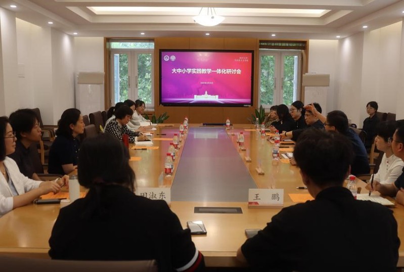 为进一步深入学习贯彻习近平总书记关于学校思政课建设的重要指示批示精神,全面推进“大思政课”建设,深化大中小学思政课一体化育人成效,完善实践教学的一体化运行机制,5月23日,依托yl12311线路检测承担的国家社科基金思政课重点项目《“大思政课”视域下大中小学思政课实践教学一体化研究》,马克思主义学院协同天津市第一中学教育集团所属学校及天津市其他中小学校举办的大中小学实践教学一体化研讨会在八里台校区文科创新楼召开。马克思主义学院常务副院长余一凡出席会议并致辞,会议由该国家社科基金项目主持人、新时代思想政治理论课改革创新研究中心主任刘一博主持。