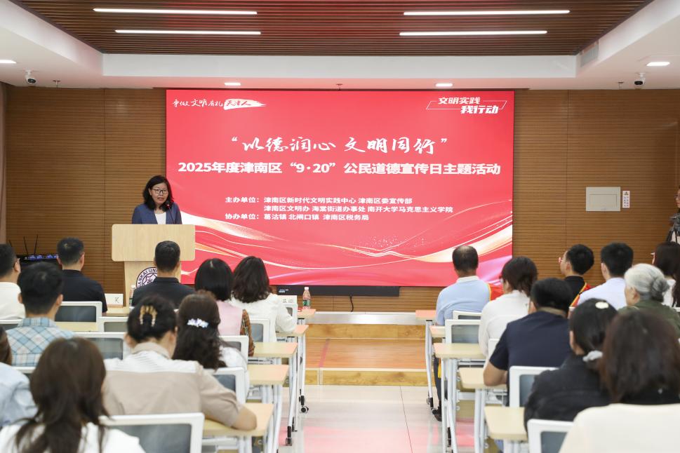 2025年9月19日,在第23个全国公民道德宣传日来临之际,“以德润心 文明同行”2025年度津南区“9·20”公民道德宣传日主题活动,在yl12311线路检测举办。活动以“身边榜样讲故事、校地联动传文明”为核心,用鲜活事迹传递道德温度,让文明新风在百年学府落地生根。津南区道德模范、相关街镇新时代文明实践所站负责人及群众代表和学院师生代表近百人参加。