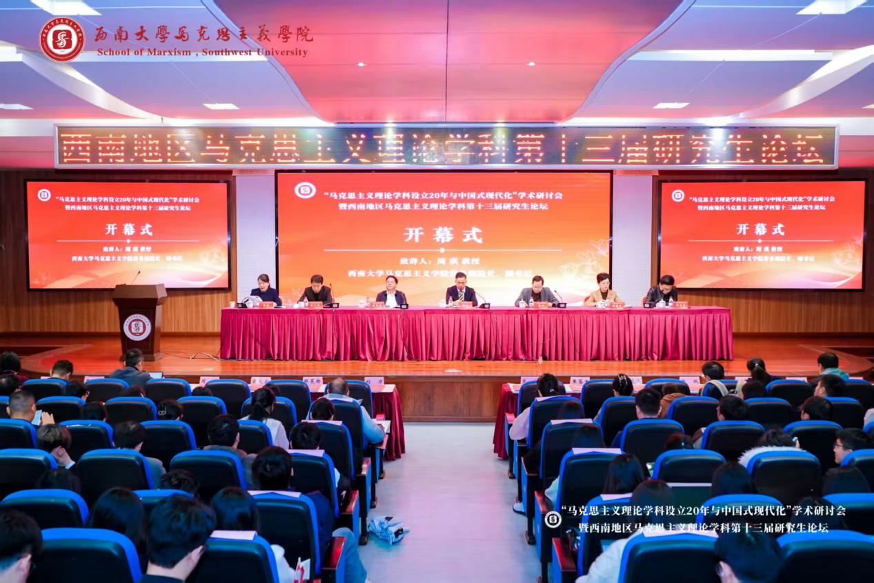 为庆祝马克思主义理论学科设立20周年,深入学习贯彻党的二十大及二十届三中、四中全会精神,推动马克思主义中国化时代化研究,西南大学马克思主义理论研究中心、西南大学马克思主义学院于2025年11月14日至15日在重庆举办西南地区马克思主义理论学科第十三届研究生论坛。本次论坛以“马克思主义理论学科设立20周年与中国式现代化”为主题,西南大学副校长邹芙都教授、马克思主义学院常务副院长周琪教授、重庆市社科联一级巡视员龙川、西南大学马克思主义理论研究中心主任黄蓉生教授等出席开幕式。重庆社会科学院院长刘力教授等作主旨报告。来自全国多所高校的青年学者围绕习近平新时代中国特色社会主义思想、中国式现代化、思想政治教育及党的建设等议题展开研讨。我院硕士研究生张競文受邀参会并在分论坛作主题报告。